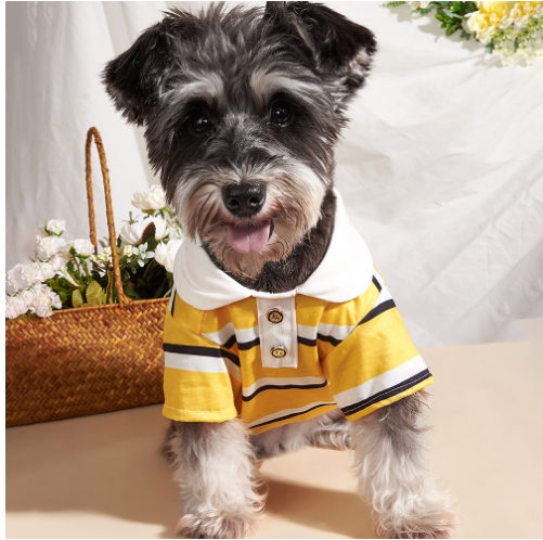 Make your pet the star of the park with our Sporty Stripe Pet Polo. This fashionable polo shirt is perfect for small dogs like Schnauzers, Malteses, and Bichons. Crafted with soft, breathable fabric, it ensures your pet stays comfortable while looking stylish during spring and autumn.