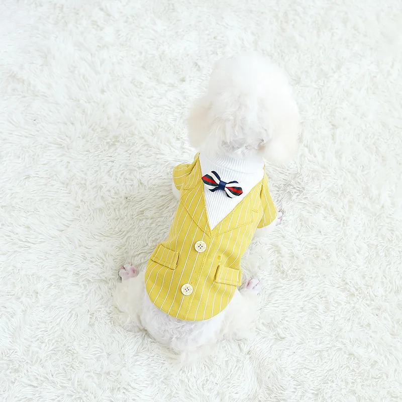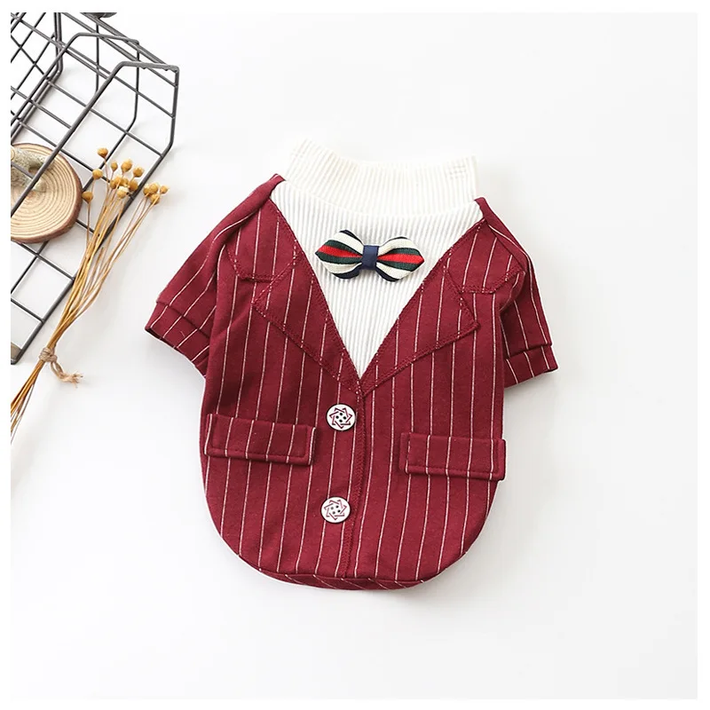 Keep your pet in plushy comfort with this Striped Cotton Autumn And Winter Dog Top. Its cotton shell is super soft, and it features white stripes to add a little extra flair to their wardrobe. So, not only does it look super cute but it keeps your fur friends warm, too.